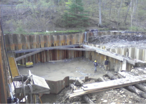 -Dam foundation incorporates a permanent sheetpile structure that acts as cofferdam and cutoff wall along the upstream face of dam to reduce seepage under dam structure